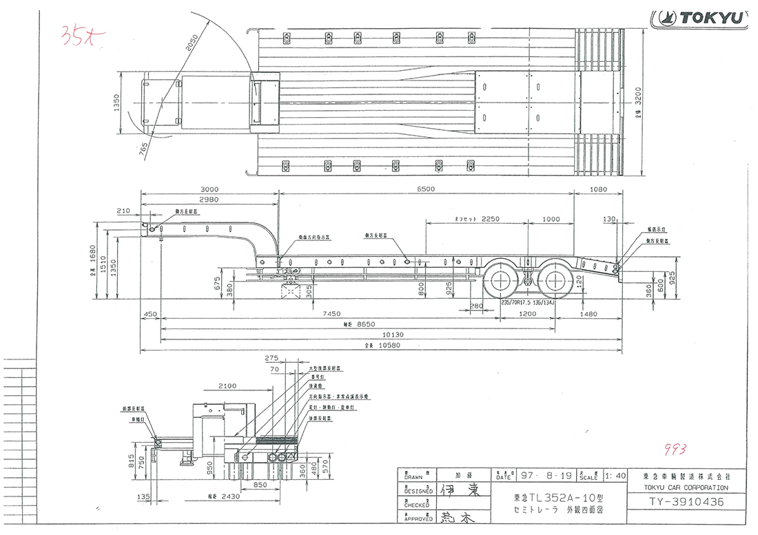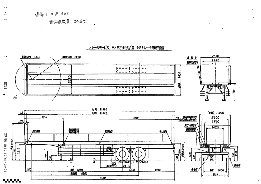 16輪ステアリング装置付伸縮低床マルチトレーラー