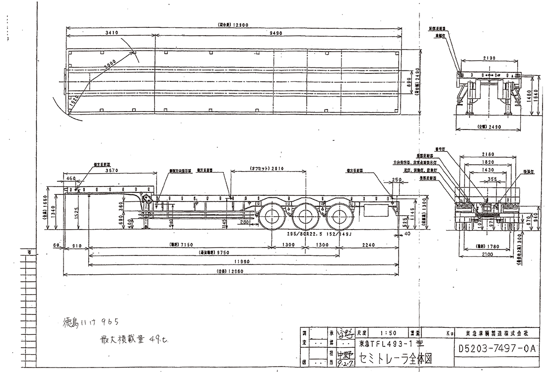 運ぶ物の高さが高くて、長さが長い荷物も荷台を自由自在に変形させる事により運搬物を分解する事なく、一体のままで運送を可能と致します。